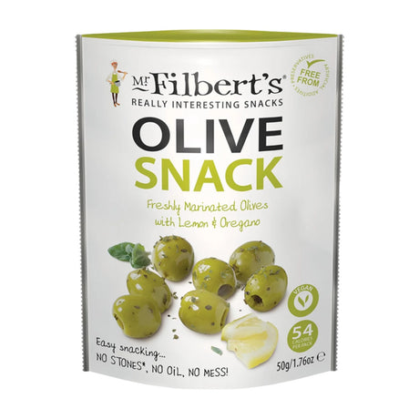 £23.04 Case of 12Unit price /UnavailableMr Filberts - Green Olives - Lemon & Oregano (50g)
