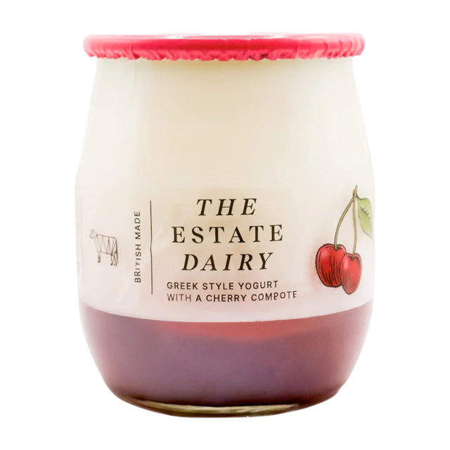 Made with The Estate Dairy's fresh non-homogenised whole milk and produced in small 1000 litre batches. The milk comes from a pedigree herd and undergoes a gentle pasteurised process, then strained. This creates a luxurious and dense yoghurt which is busting with rich flavour, which has been beautifully layered with cherry compote.